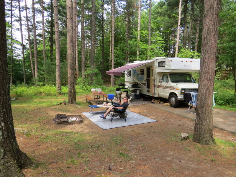 In 2015, we took the big step and bought a used class C 29’ Fleetwood Motor Home. We called her Dora the Explorer. That was traveling in real luxury and so much easier with the dogs. At the time we had Maddy and Riley, and they enjoyed camping as long as Maddy could see where I was because she had separation anxiety. I could hear her whining when I would go to the bathroom, and she couldn’t see me. At times, I would just bring her into the bathroom with me. My favourite spot was camping at Higley Flow State Park in South Colton, NY. It was probably the only time I didn’t get eaten up by mosquitos. I only got one bite, and it was when we went hiking in the woods. We went back two years later, and I got a few bites. When I mentioned it to the park rangers, they said it was because they used to spray the woods and didn’t do it that year. I wouldn’t say I liked that they were using chemicals to kill these insects, but it made for pleasant camping.